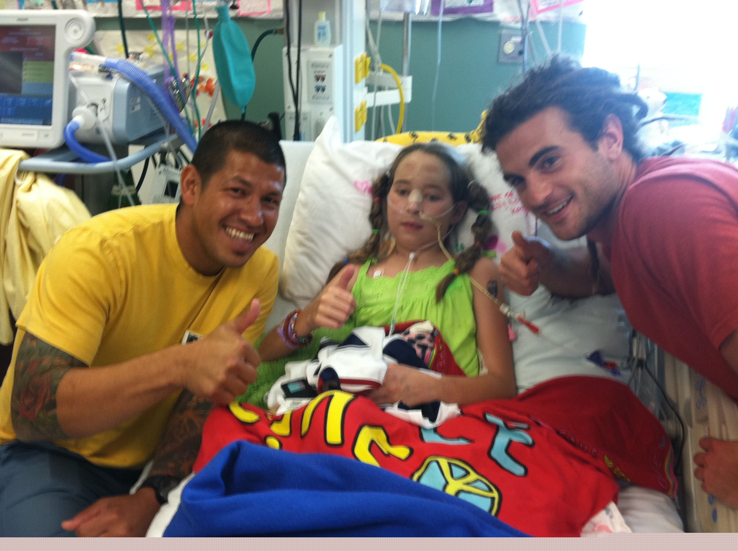 Mia and her new friend, Abby Doman. you can see Abby's incredible blog/site here (done by her incredible Mother, Michelle and her sister Britt: http://abbyninja.blogspot.com/) Go Abby!! Get better! and come visit us at home when Mia gets out!
